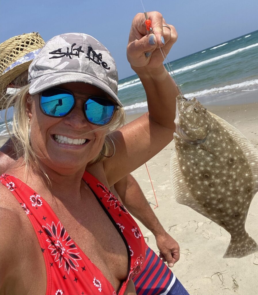 Flounder is one of the best bets from the surf or boat but in 2023 the flounder season is closed to keeping until mid September. The flounder season will begin September 15th through the 29th with one flounder a day per person with a minimum size of 15”. The north end of the island generally offers the best wading and surf fishing opportunities, while Ocracoke Inlet produces some of the best boat action. As described last month, strips of squid or croaker on flounder rigs will produce results when live minnows are hard to find. Expect to see the biggest pompano of the season, caught from the surf and shoals on shrimp and sand fleas. Sea mullets also take shrimp and sand fleas, so those baits can account for some of the best eating fish found in the surf. Successful anglers are fishing close to the beach with light tackle, making these hard fighters fun to catch.