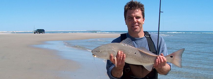 Once the water warms enough for bait fishing, usually high 50’s or low 60’s, puppy drum rigs and drum rigs become popular choices, such as the Tradewinds puppy drum rig, Joe Moore drum rig, and Sporto rig. When the wind breezes up strong from the SW, warm water may bring in the citation sized red drum. Surf conditions often require 6 ounces or more of weight to fish in these currents, which requires a strong 11 or 12 foot surf rod rated to 8oz or more. Choosing an appropriate heavy “drum” rod requires discussion with someone experienced in the application. Please contact us by email or phone for more information.